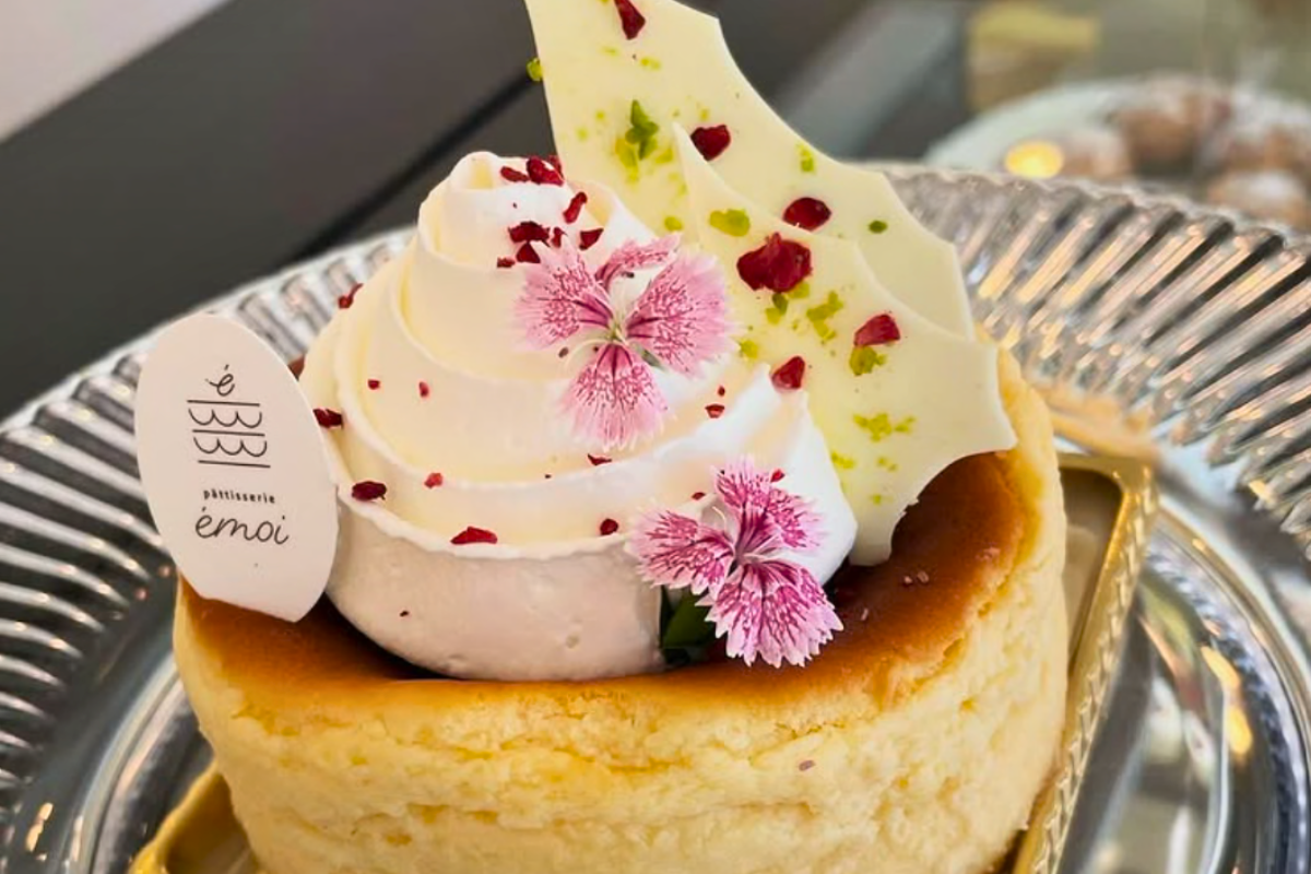 貝塚駅近くの「なかんちょ通り」に2025年4月にオープンして以来、スイーツ好きの間で話題沸騰!白を基調としたお洒落な外観が目印の『patisserie emoi(パティスリー エモワ)』。早い時間帯に売り切れてしまうことも多い、地域の人気店です。