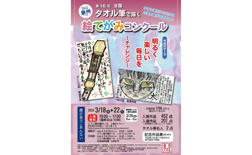 日本タオル発祥の地・泉州から、タオル筆と絵てがみの魅力を発信する特別な展示会が開催されます。
