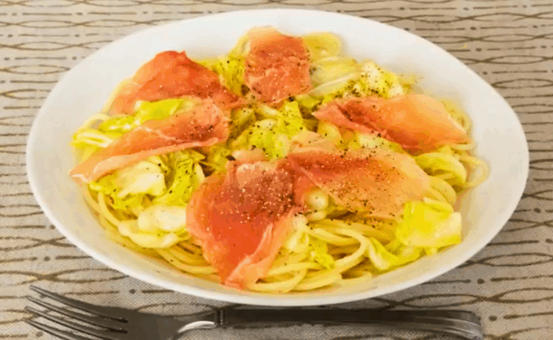 15分で完成!キャベツと生ハムの塩パスタ【ゆるレシピ】